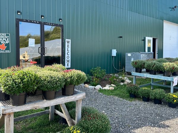 Find our farmstand in the big green barn at 330 Choiniere Road. Head in through the glass doors.